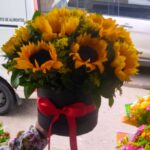 Caja Girasoles Caja cilíndrica, con una delicada selección de girasoles,...